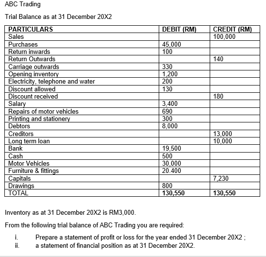 Solved Abc Trading Trial Balance As At 31 December 20x2 Chegg Com
