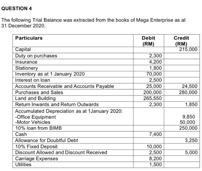 Solved Question 4 The Following Trial Balance Was Extracted Chegg Com